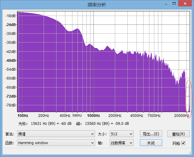 3.最后就是这次题目的做法,想法相当好,题目首先拖到audacity,从频率分析中可以看到高频区有很明显的问题。